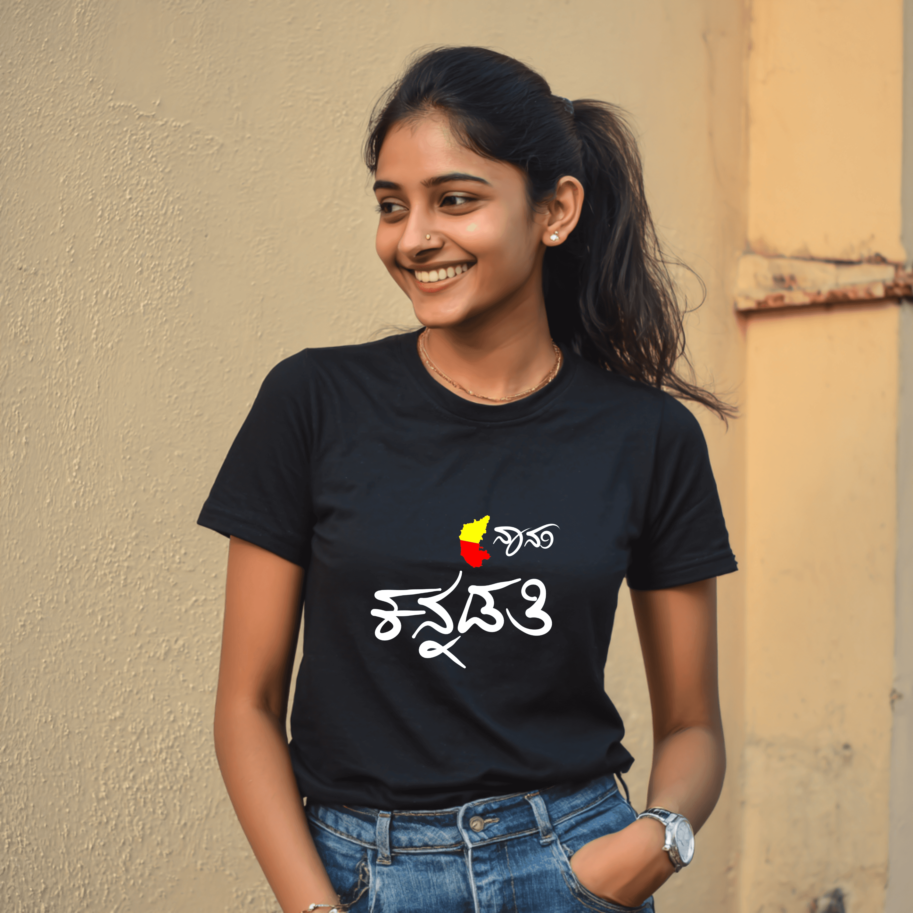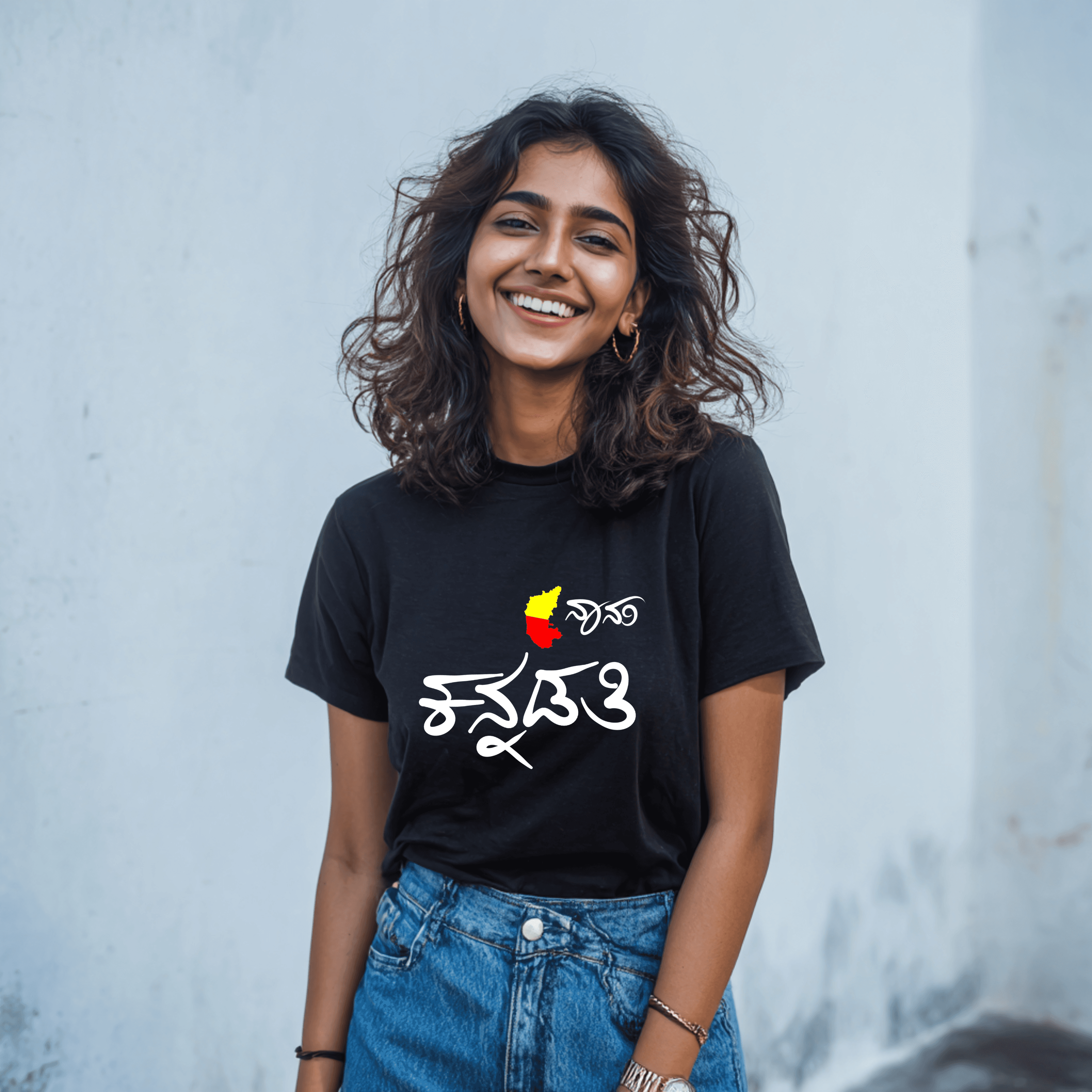 Appeals to fans searching for “Kannada pride T‑shirt,” “Kannadiga tee,” “Karnataka map shirt,” or “Kannada language apparel.”