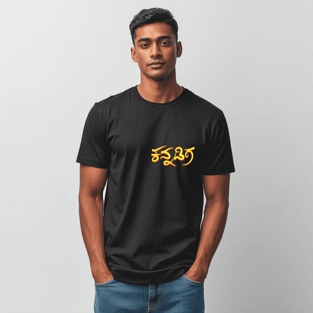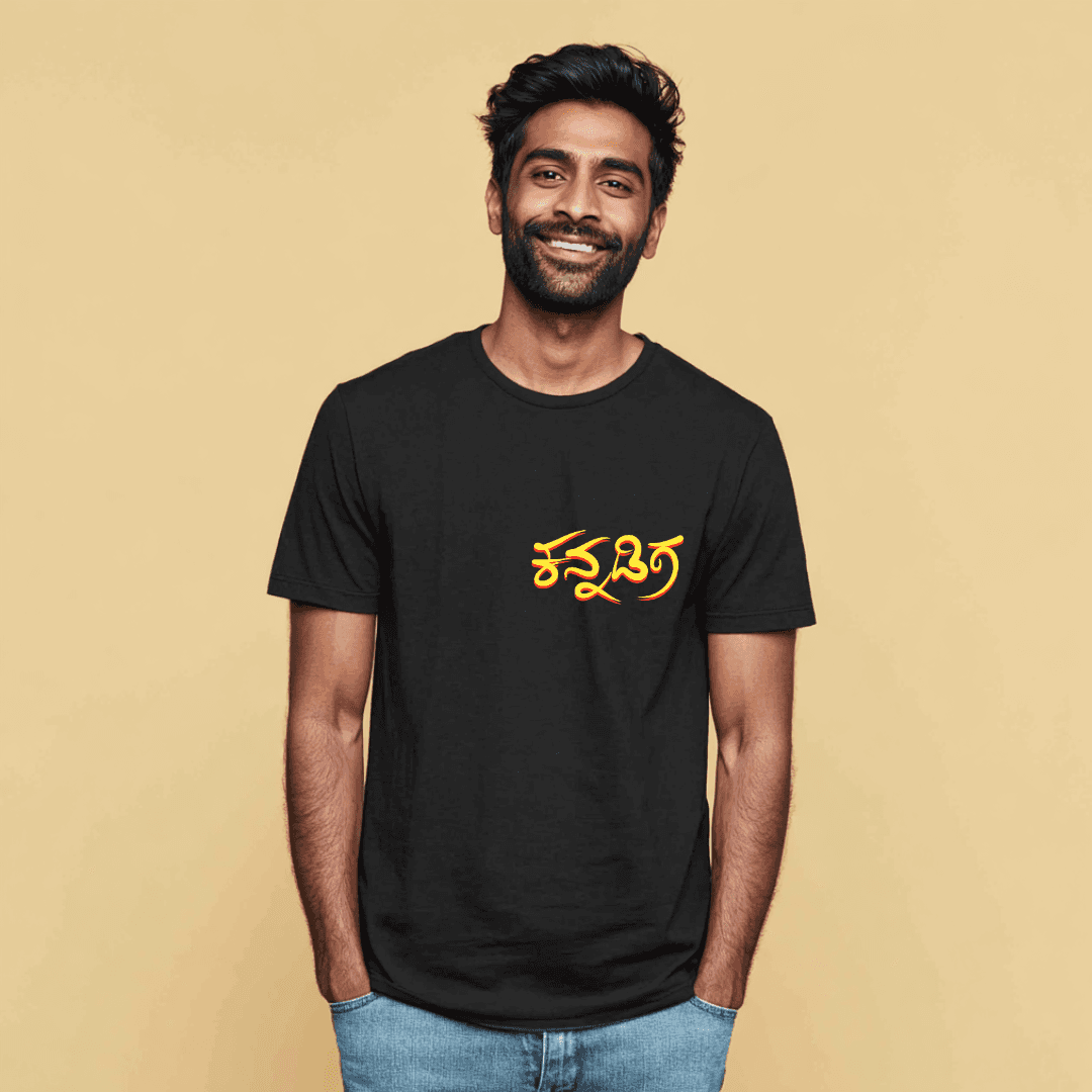 Celebrate your Kannada identity with our Kannadiga pride T‑shirt, featuring the Kannadiga text in authentic Kannada script. Crafted from 100% premium cotton, this unisex tee delivers breathable, everyday comfort with a modern, relaxed fit—perfect for college life, festivals, or casual streetwear. Machine-washable and fade-resistant, it offers both style and longevity.