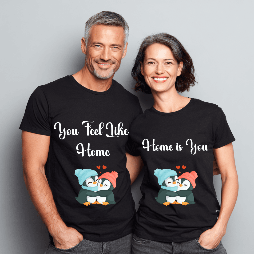 Celebrate love, warmth, and togetherness with this charming matching couple T-shirt set — one shirt reads “You Feel Like Home”, the other “Home is You”. A perfect choice for couples who see each other as home — ideal for anniversaries, holidays, cozy dates, or everyday couple outfits.
